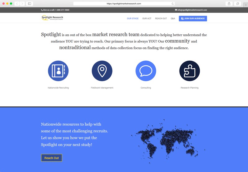 Spotlight research needed a simple corporate website. I built it on WordPress, using Divi and only 2 plugins are running!